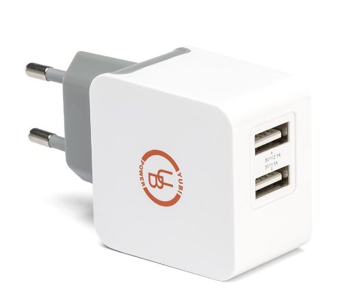 Yubi Power Dual Port 3.1A USB AC Charger With EU Plug charges your iPad, iPhone, iPod, HTC, Blackberry, MP3 Players, Digital Cameras, PDAs, Mobile Phones.
