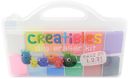The easy make and bake eraser kit where you can shape your very own eraser. The Creatibles DIY Eraser Kit is easy as 1,2,3. You build it, bake it and erase with it. Make all sorts of amazing eraser creations with this Do It Yourself kit. Creatibles comes with 12 pliable clay colors that can be mixed for an endless amount of hues. Create any kind of cool shapes, characters or whatever you want your eraser to be. Follow the baking instructions and you'll have an amazing eraser all your own. And it comes in a nifty reusable case. It's fun to make and fun to erase.Feature