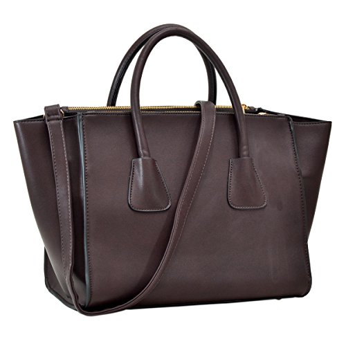 SPECIAL DESIGN of this handbag is the side winged. Two top zip side compartments with magnetic snap closure. Structured body and sleek look. It is very hard for this bag to lose shape.