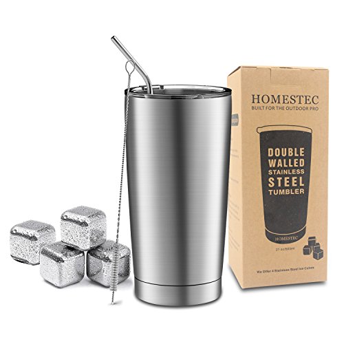 21 oz Double Wall Stainless Steel Tumbler Set HOMESTEC High-Capacity Vacuum Insulated Travel Tumbler with Spill-Proof Splash Resistant Lid Included Straw and Cleaning brush and Stainless Steel Ice Cub