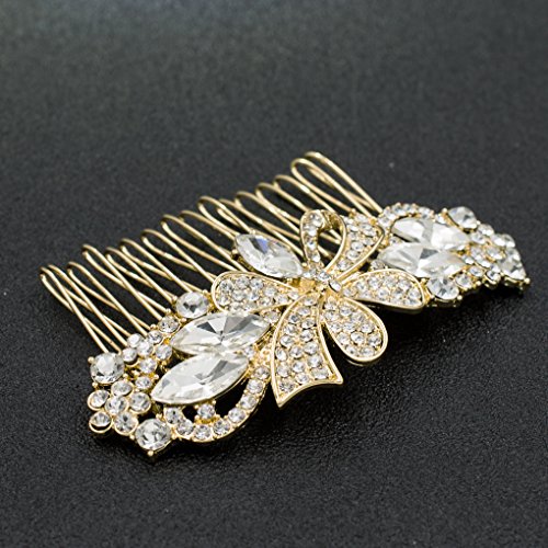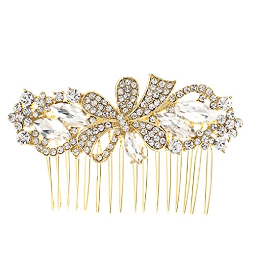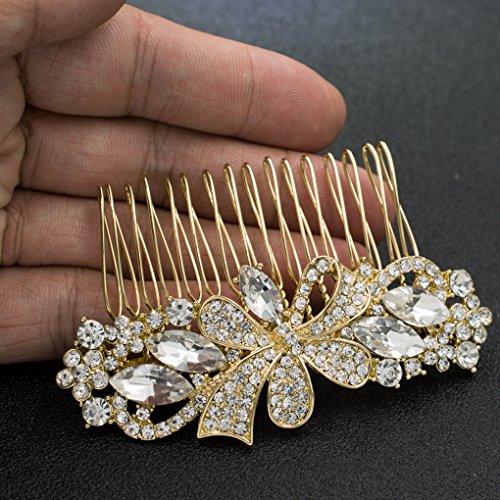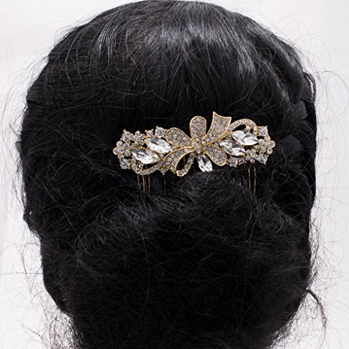 SEPBRDIALS Rhinestone Crystal Wedding Brides Hair Comb Pins Pieces Accessories Jewelry FA5086 (Gold)