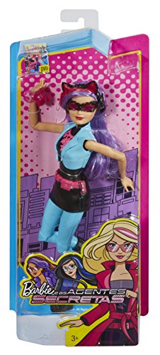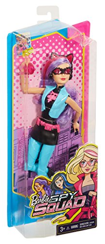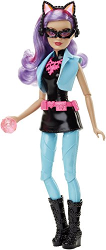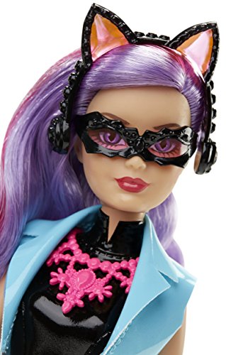 Tumble into action with Cat Burglar doll from Barbie Spy Squad! In the action-adventure film, Barbie, a world-class gymnast, is recruited to be a world-class secret agent along with her friends Teresa and Renee. The three take their teamwork from the gymnasium to the streets -- and around the globe -- to stop an infamous cat burglar in her tracks. This burglar's been been hired to steal some of the world's greatest gemstones. Tell her side of the story with the Cat Burglar doll in an iconic outfit from the movie. Her sleek molded bodysuit is accessorized with a cool vest, fabulous pair of boots and statement necklace. Cat ears and a mask are perfect for the mystery thief, while the giant "gem" she can hold in her hand is the perfect evidence. Secret-agents-in-training will love recreating action scenes from the film or spinning new spy adventures. Collect all of the characters from Barbie Spy Squad to close any case (each sold separately, subject to availability). Includes Cat Burglar doll with vest, necklace, boots, cat ears, mask and gem. Colors and decorations may vary.Feature