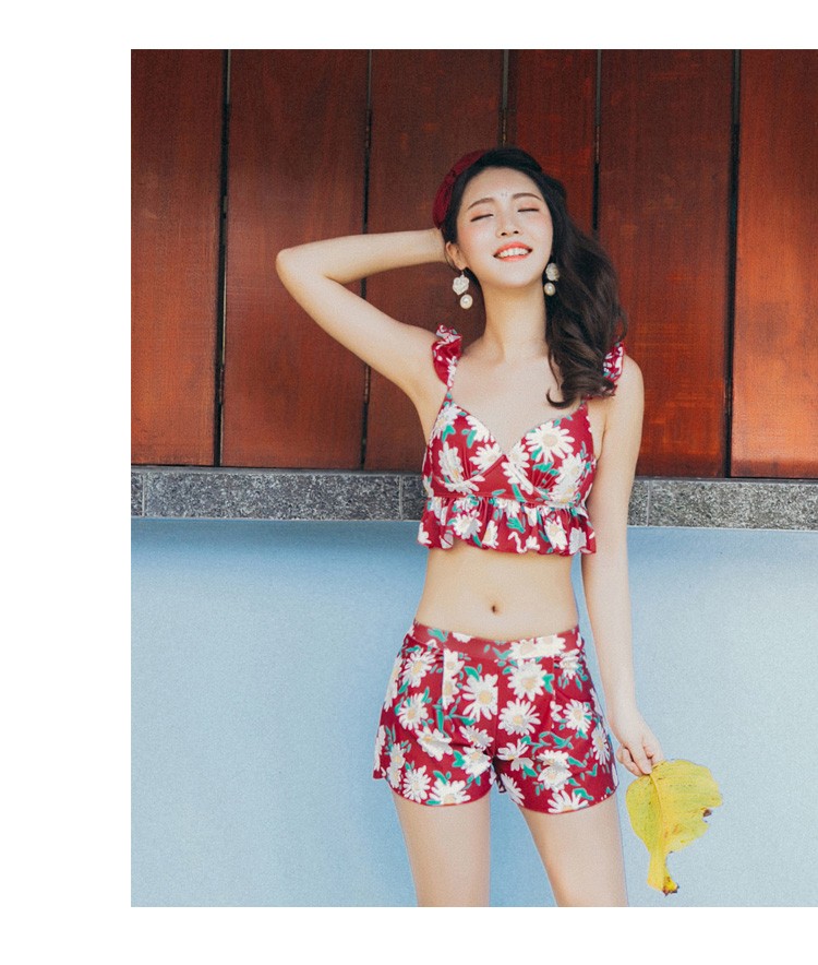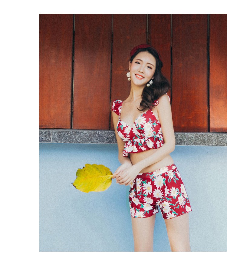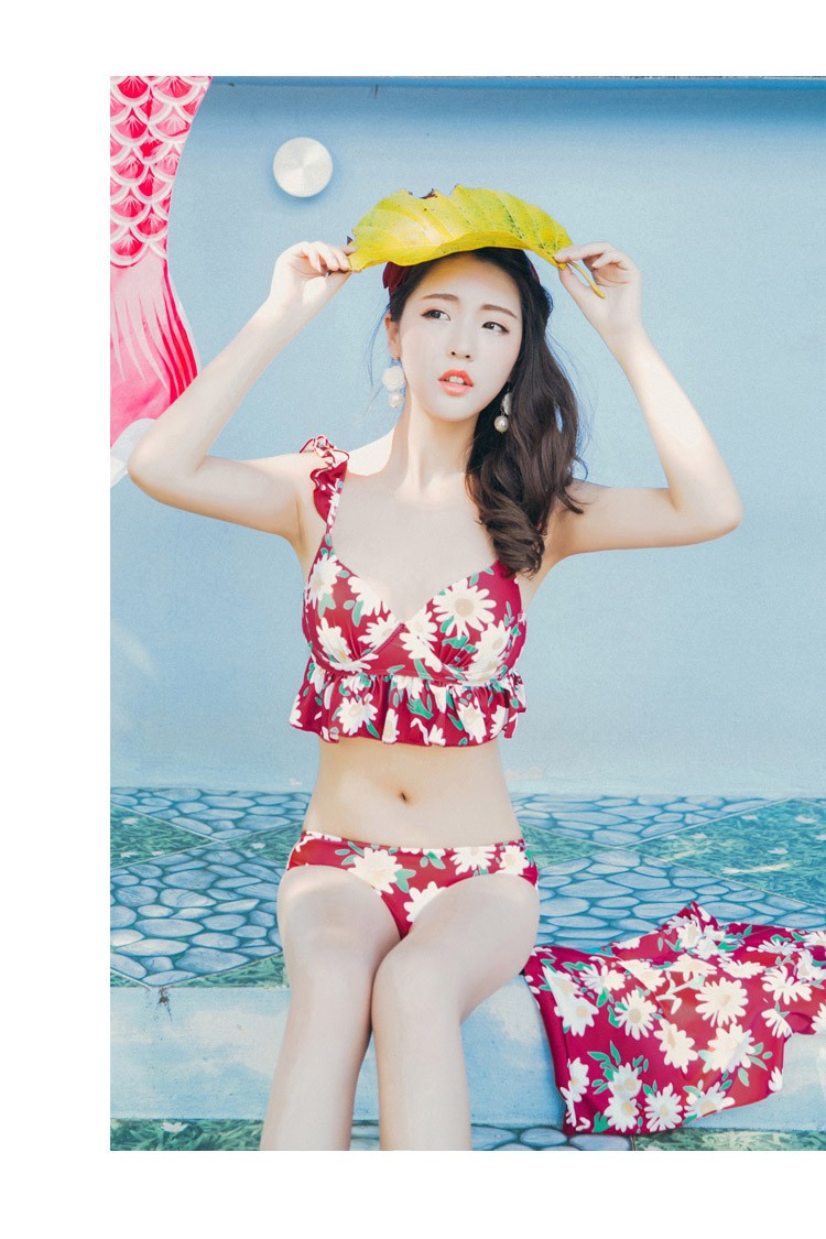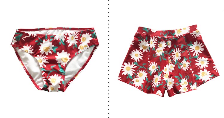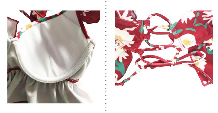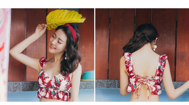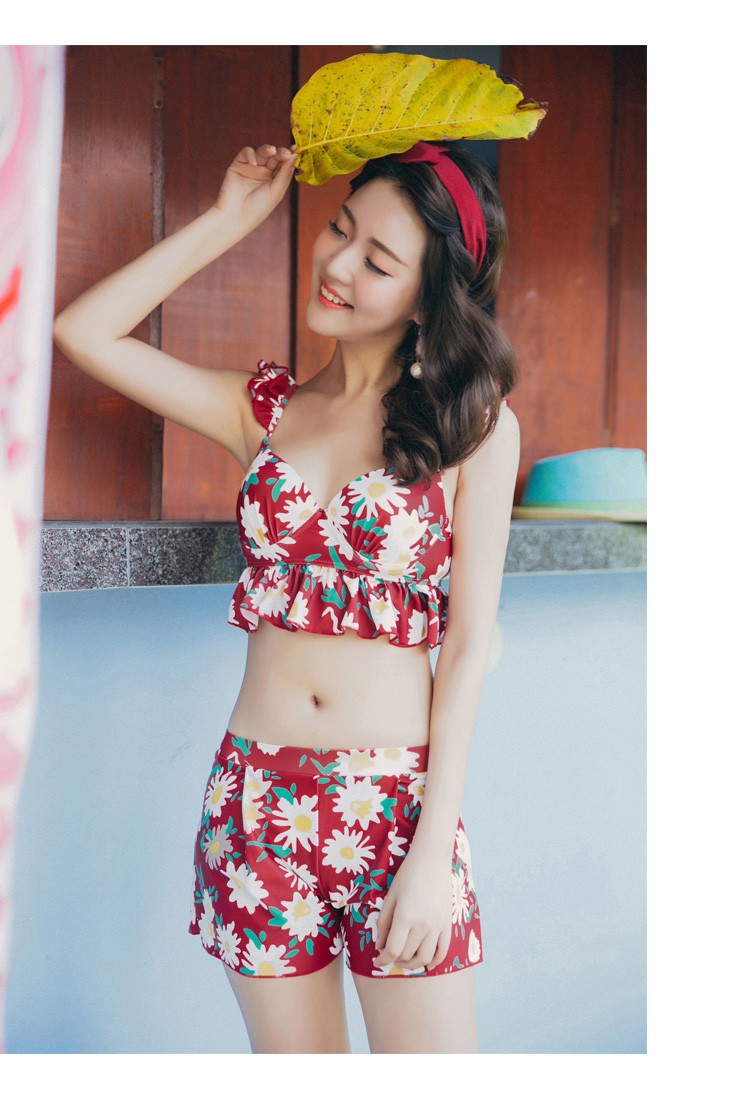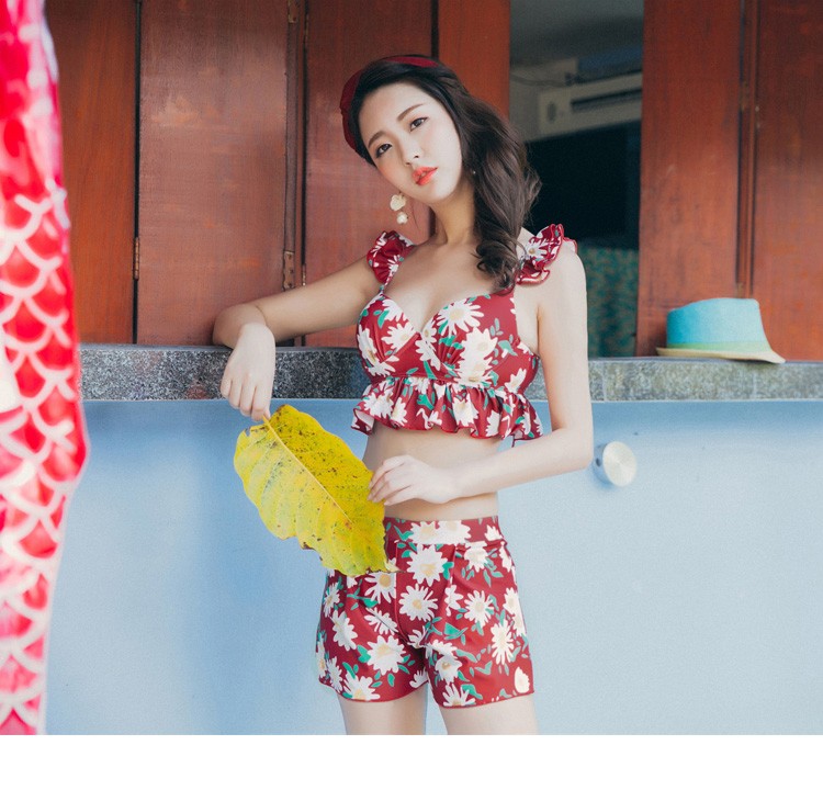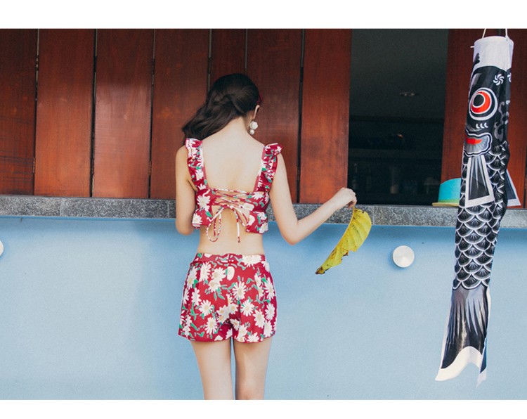 ワインレッドにホワイトの花柄がビーチでも目立つ1品!