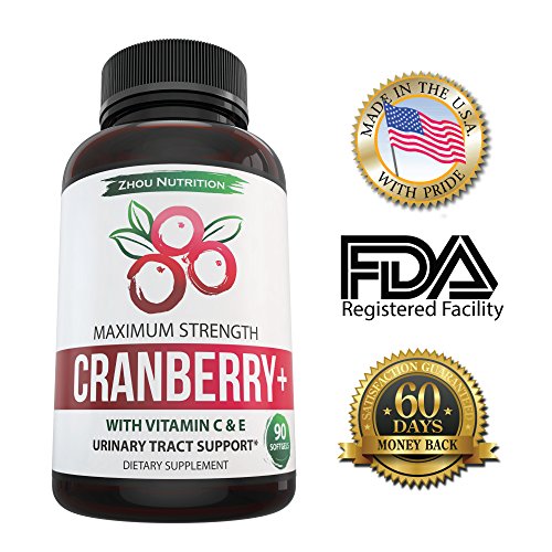 - Feature : NATURAL, MAXIMUM STRENGTH SUPPORT - This formula brings you a 50:1 cranberry concentrate with the power of 12,600mg of cranberries. Naturallly-occuring Vitamins C & E maximize the benefits of cranberry and adds an important antioxidant boost. We pride ourselves on combining the ancient wisdom of herbal remedies with today's most thorough research to bring our customers the most superior products on the market. We believe in providing just the right amount of each ingredient - no more, no less. / CLEAN FORMULA: GLUTEN FREE, NON GMO & MORE - We're proud to offer you one of the cleanest urinary tract support formulas on the market. Our 'Cranberry +' Formula with Vitamins C & E is Gluten-Free & Non-GMO. It is free of soy, wheat, nuts, milk, eggs, fish & shellfish. No artificial flavors, colors or preservatives. No added sugar. We think it's important that a formula meant to cleanse is 'clean' too. / CONVENIENT, ONCE-DAILY SOFTGEL - Just one convenient softgel per day and you can rest assured that you have promoted a healthy urinary tract to help prevent painful infections. / POWERFUL ANTIOXIDANT BENEFITS - Cranberry is a naturally powerful antioxidant with the unique benefits of Vitamins C & E. This 'Cranberry +' formula can promote a healthy immune system and help your body fight free radical damage to healthy cells and tissues. Similar to the benefits of other naturally-occuring antioxidants, cranberry may also offer anti-aging benefits to the skin and other organs. / 100% MONEY BACK GUARANTEE - As with all of our products, we offer a 60-DAY 100% Money Back Guarantee. We are so confident that you will love our 'Cranberry +', that we'll refund every penny if you don't like it. What do you have to lose?
