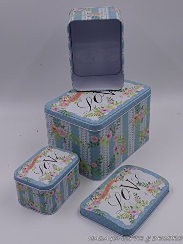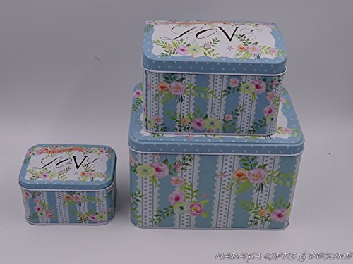 Loved Themed French Style Blue multipurpose storage tins, shabby chic, Set of 3 with beautiful floral design