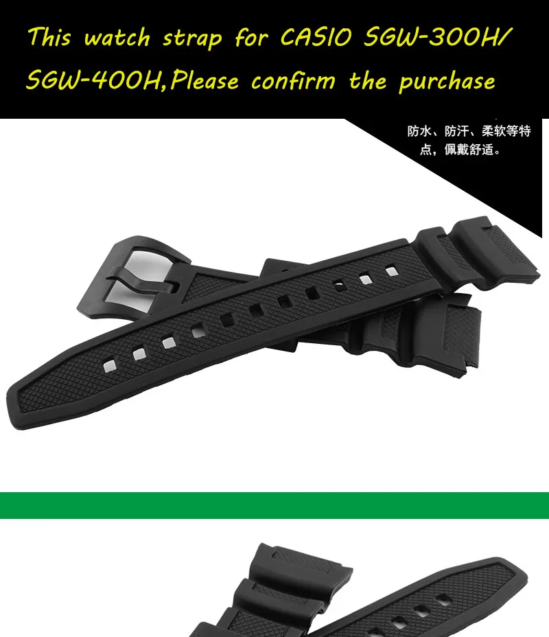 Zhuolei 손목 카시오 SGW-300H/SGW-400H 시계 밴드 블랙 실리콘 고무 스트랩 남성 팔찌