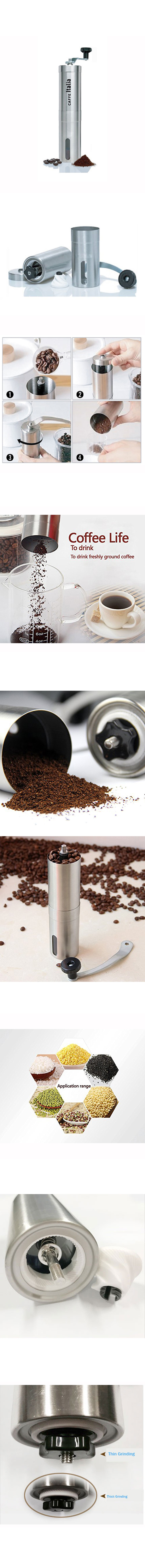 SCOPE:suitable for grinding coffee beans, spices, medicinal herbs and so on. It is used for family kitchen and outdoor travel. You go anywhere: this slim and portable manual coffee grinder can accompany you all the travel