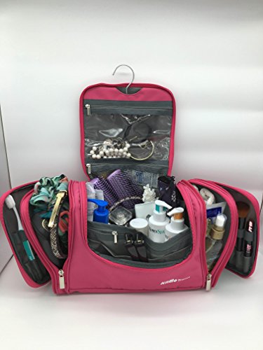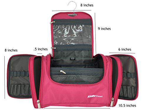Binding : Misc. Product Description MONEY BACK GUARANTEE. WASHABLE FABRIC. Hand wash or machine wash on a cold water gentle cycle. Hang to dry. This bag makes traveling super easy and less chaotic with KitMo Travel Organizer Bag. It is durable and easy to organize all of your essential toiletry items. Perfect for holiday or business trips. An additional zipped pocket per side in the middle provides extra storage space. Inner bag cover has a transparent compartment to help you find items easily and quickly. Ample room for accessories storage, e.g. hair clips, hair bands, ear rings, necklace, bracelet, batteries, bandage, nail clippers, tweezers, cotton buds, cotton pads etc. Product size: 13 (L) x 8 (H) x 6 (W) inches *************************** GREY is available for sale, please have a look at https://www.amazon.com/dp/B01GRYCU50 0