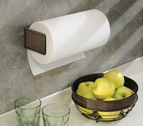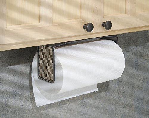 mDesign Wall Mount Paper Towel Holder for Inside Kitchen Cabinets and Home – Bronze