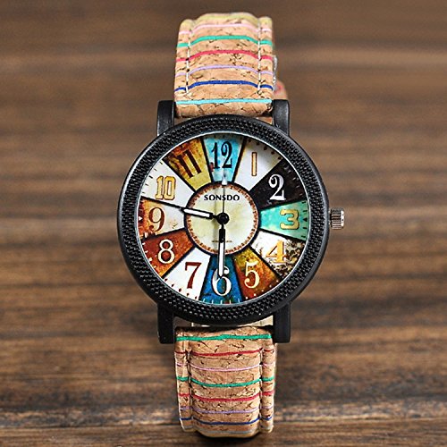 -. Title : Souarts Womens Artificial Leather Vintage Pattern Analog Quartz Wrist Watch Coffee 24.5cm