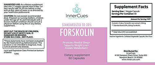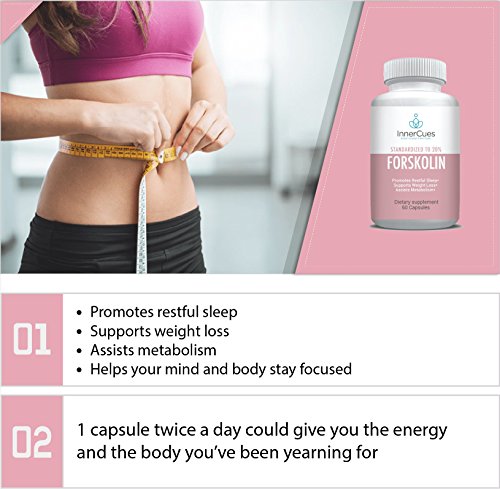Studio : InnerCues Publisher : InnerCues Binding : Health and Beauty Product Description Even though you're trying hard to eat healthy and exercise regularly, those extra few pounds just won't budge. While a balanced diet and regular movement certainly are keys to staying slim, we know that sometimes you need a little boost. Up your metabolism with InnerCues Forskolin. Made with natural ingredients, this veggie capsule not only supports weight loss by giving you that extra energy lift, but also helps to give you that all-important restful night's sleep. Wake up refreshed and focused, and ready to take on the day with vim and vigor. 0