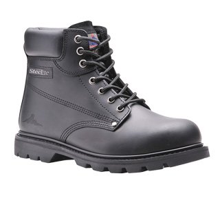 Binding : Apparel Product Description Goodyear welted safety boot with steel toecap and steel midsole. Padded collar and breathable lining for maximum comfort and durability. Heat and slip resistant outsole. EN ISO 20345. Fabric: Upper: Split leather, Outer: Rubber - outsole F07. Size UK (Euro) 6 (39), 6.5 (40), 7 (41), 8 (42), 9 (43), 10 (44), 10.5 (45), 11 (46), 12 (47). 0
