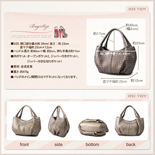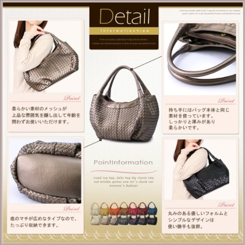 -. Feature : プチサイズ トートバッグ バッグ バック 鞄 カバン レディース Bag■ちょっぴり小さめで普段使いにちょうどいい大きさ 。大人デザインカジュアルプチバージョンメッシュ トートバッグ / ■サイズ・・ 最大高さ約23cm×横幅最大約39cm(開口部分幅)×底マチ25cm×約12cm 持ち手高さ約17cm 内ポケット 小物入れオープンポケット中1小1、ジッパー付きポケット×1、ジッパー付き仕切りポケット×1 バッグのメイン開閉口はマグネットです。 / ■素材 合成皮革 ■カラー:バニラ/ライトシャンパン/シャンパンゴールド/ブロンズ/オレンジ/ローズピンク/バーガンディ /パープル/マスタード /ブラウン/ネイビー/グレーパール/チョコ/ブラック / ■摩擦や水濡れ等により色落ちする場合があります。実寸サイズとは多少異なる場合が御座います。ご了承ください。 PCモニターの画質や環境により、写真と実物の色味が多少異なる場合がございますご了承ください。