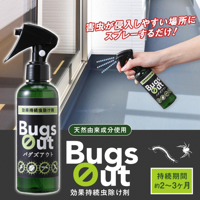 天然由来の防虫成分が家屋の害虫を持続的に防虫します。侵入防止や付着防止にスプレーするだけです。内容量/200ml 素材・材質/ヒノキオイル、オレイン酸、テルペン油、除虫菊エキス、ハッカ油、水 製造国/日本 ※サプライヤー直送品 ご注文後、当日~1営業日後の出荷となります【商品名】効果持続虫除け剤バグズアウト