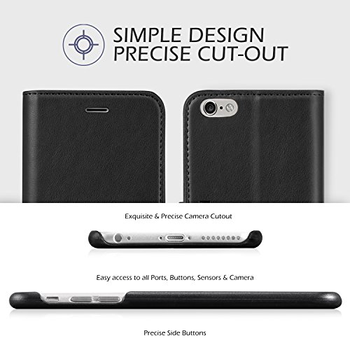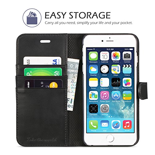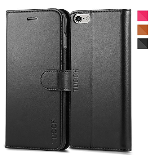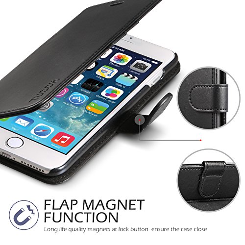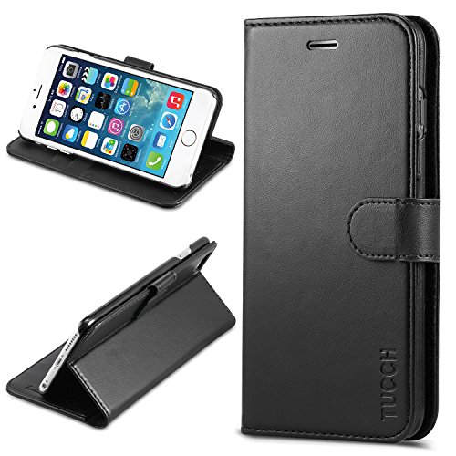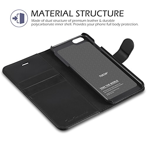 TUCCH iPhone 6S/6 Plus Case, Premium PU Leather Flip Folio Wallet Case with Card Slot, Cash Clip, Stand Holder and Magnetic Closure, Black