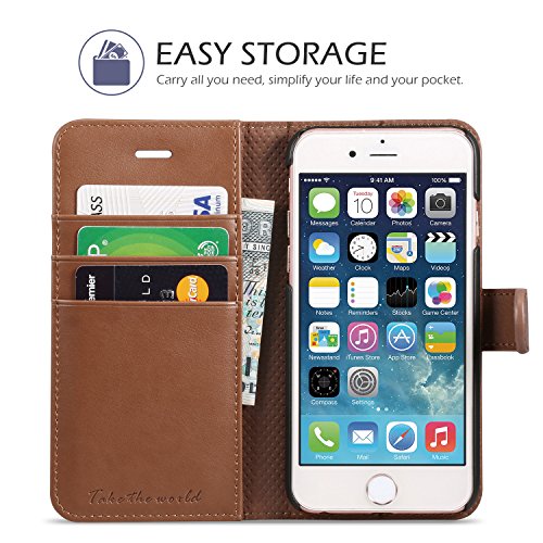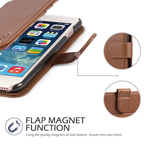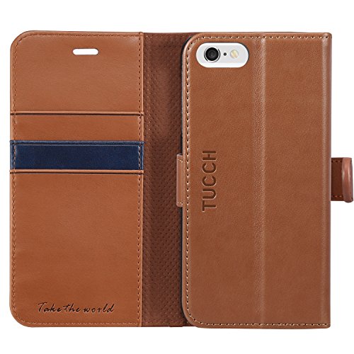 iPhone 6s Plus Case, TUCCH Wallet Leather Case for iPhone 6s / 6 Plus (5.5 inch), Slim Flip Folio Cases Book Cover with Credit Card Slots, Stand Holder, Magnet Closure, Brown