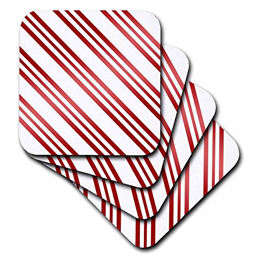 3dRose cst_20398_2 Christmas Candy Cane Stripe Red and White Soft Coasters, Set of 8