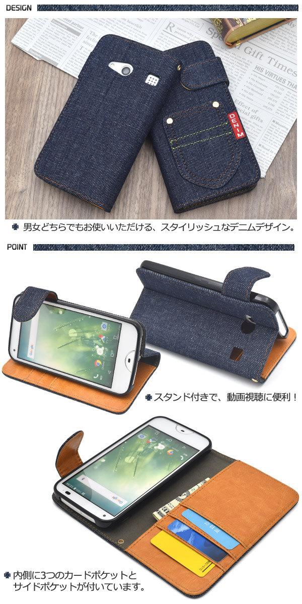 rafre KYV40用デニムデザイン手帳型ケース
