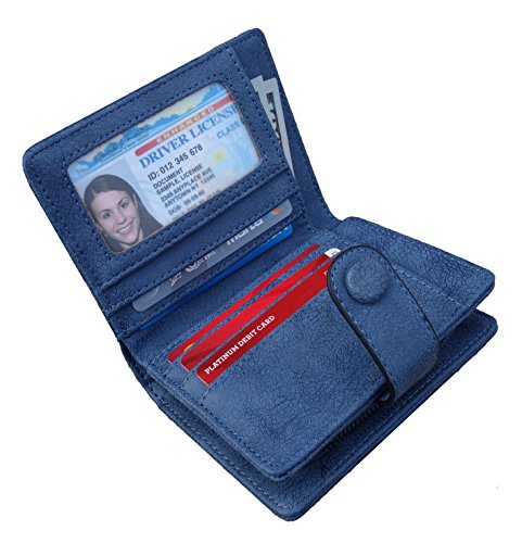 Women's Leather Small Bifold Wallet with ID Window Coin Card Sleeve RFID Blocking