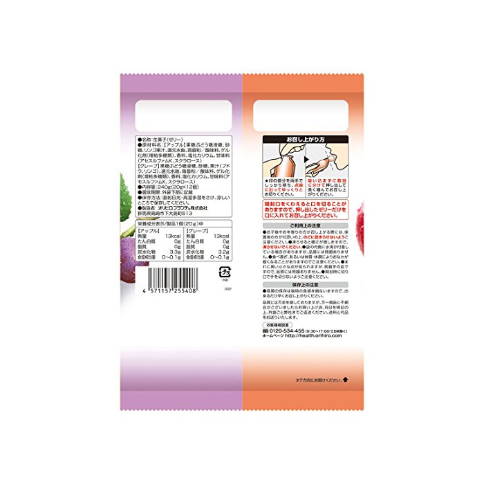 칼로리:영양 성분 표시/제품1개(20g)중【애플】열량13kcal 【그레이프】열량13kcal