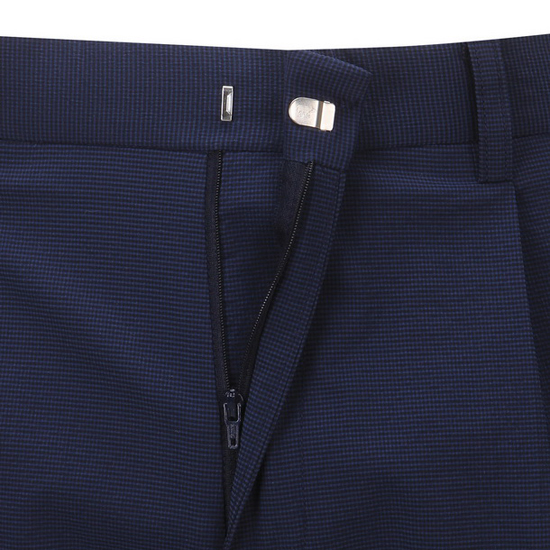 - 마이크로 깅엄 체크 패턴을 적용한 남성 팬츠.