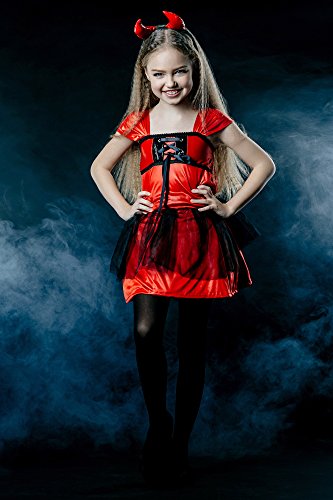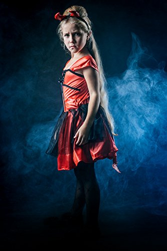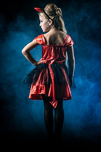 -. Brand : La Mascarade -. Color : red and black -. Department : girls -. Feature : Сhild's masquerade costume set of Devil Darling / Horny Lil' Devil / Wicked Little Girl by La Mascarade Company / Cosplay costume includes red dress with attached tail, head ornament with horns / Perfect for dress up parties, pretend play, Halloween night, stage performances, cosplay and cosplayers, masquerade ball / You may complete the fancy dress with pitchfork,red gloves, white tights, black flats, make-up / All our dress up costumes are available in 3 sizes: for 3-6 years (3'7"- 3'11"), 6-8 years (3'11"- 4'3") and 8-11 years (4'3"-4'7"). -. Label : Mascarade WorkShop -. Manufacturer : Mascarade WorkShop -. PackageQuantity : 1 -. ProductGroup : Apparel -. ProductTypeName : CHILDRENS_COSTUME -. Publisher : Mascarade WorkShop -. Studio : Mascarade WorkShop -. Title : Girl Devil Darling Devilina Imp with Horns Dress Up & RolePlay Halloween Costume