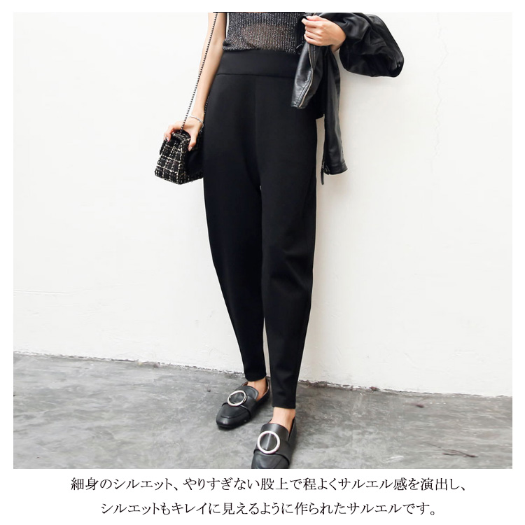 | ちょいサルエルをキーワードに作成されたオリジナルのサルエルパンツ。細身のシルエット、やりすぎない股上で程よくサルエル感を演出し、シルエットもキレイに見えるように作られたサルエルです。下半身をすっぽり包み込み、気になる部分の体型カバーにも役立ちそう。 これ一つ取り入れるだけでグッと今年らしい印象になります。 | |