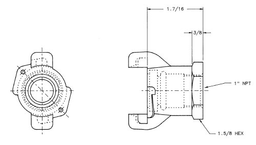 Dixon Air King AM13 Iron Air Hose Fitting, 2 Lug Universal Coupling, 1" NPT Female End