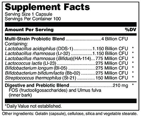 Each Multi-Probiotic 4000 capsule, provided by Douglas Laboratories, contains over four billion beneficial organisms, including representatives of both the lactobacillus and bifidobacterium genera, mixed in a base of prebiotic fructooligosaccharide.
