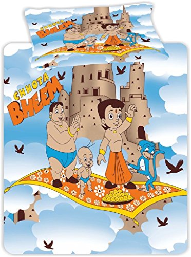 Studio : Acme Publisher : Acme Product Description Chhota Bheem cartoon character single bedsheet with 1 pillow cover set in vibrant color combination. Good design with 100% cotton material that suits your kid's delicate skin. Product matches exactly with the images shown. 0