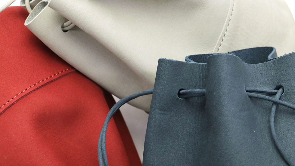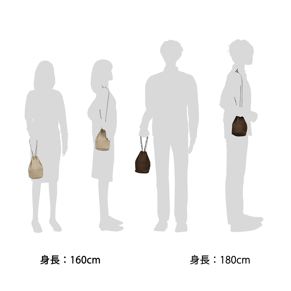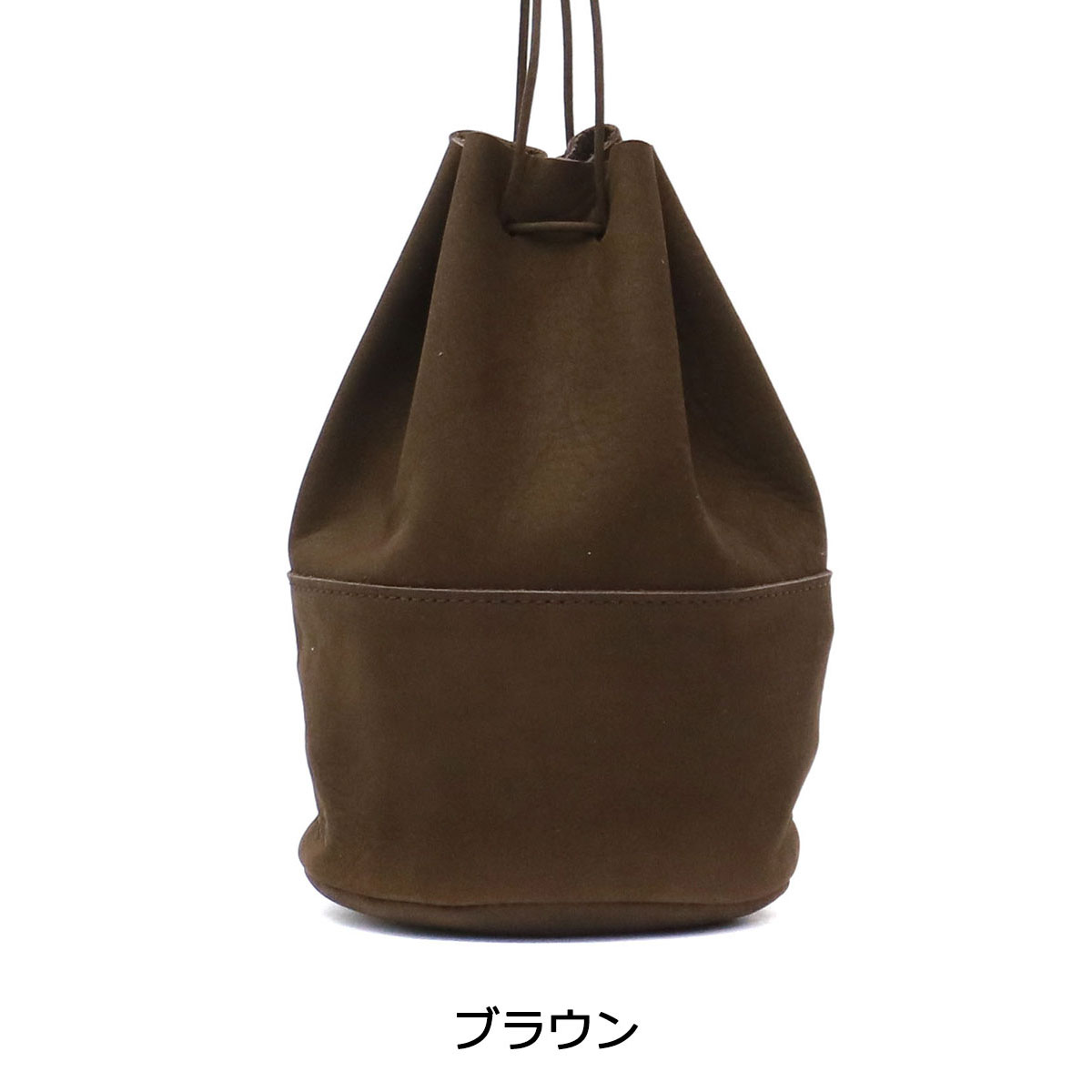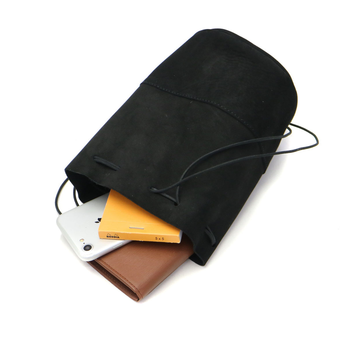 日本古来から使われている巾着袋をヒントに、現代の装いに合わせてシンプルかつ愛着が湧くようなデザインにした巾着バッグ。発色が良く肌触りの良いヌバックレザーを1枚で仕立てた2018 GREEN LINE限定の特別仕様です。