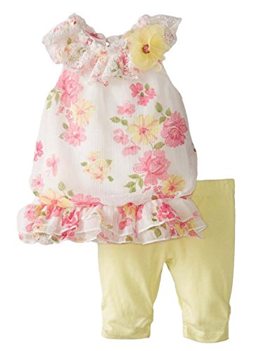 -. Title : Nannette Infant Girls Floral Print Chiffon Top & Yellow Leggings Outfit 2 PC Set
