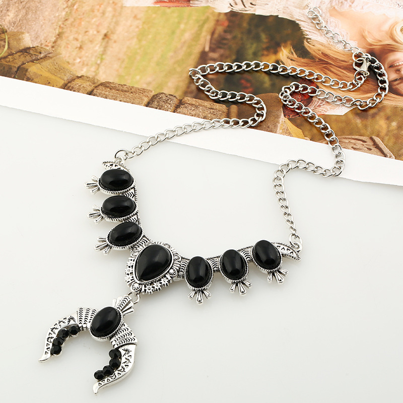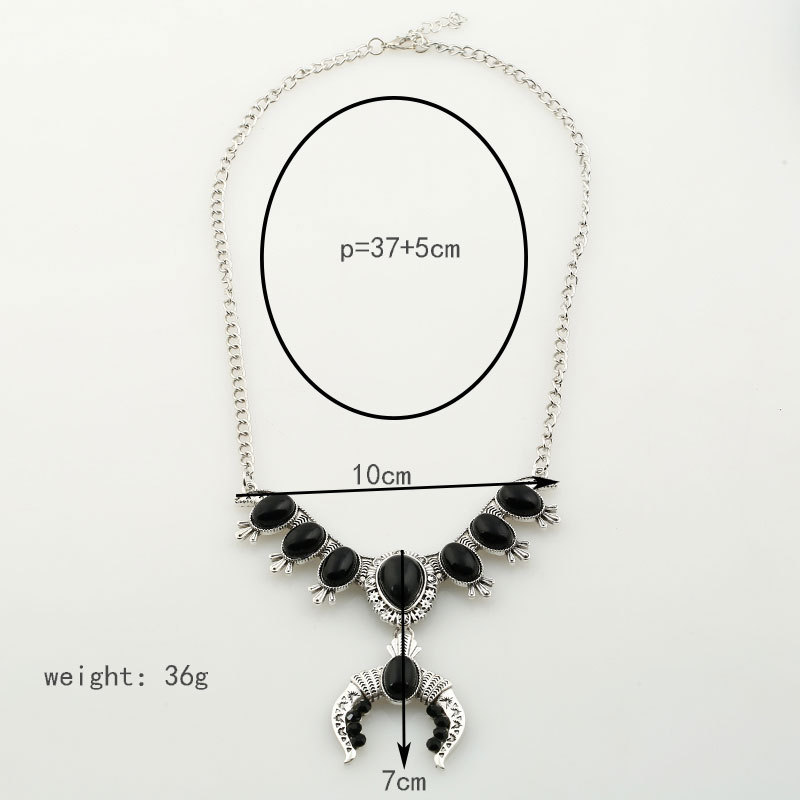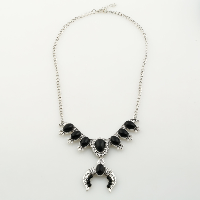 产品名称:2017新款项链批发 欧美复古民族风雕花松石配饰项链 热卖项链饰品