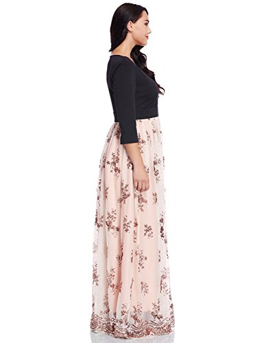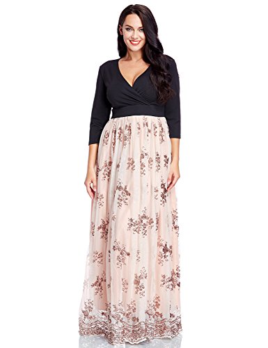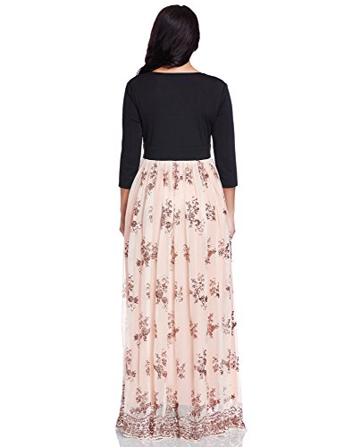 Haven't decided what to wear in your coming evening party? This sequin long dress will be your choice. It features 3/4 sleeves, surplice neckline and empire waist design. Differs from its solid bodice, its skirt has sequins detailing, all form into fit and flare shape and show off your charming silhouette. You can style it with high heels. This maxi dress will be perfect for evening party, formal, club or other special occasions.