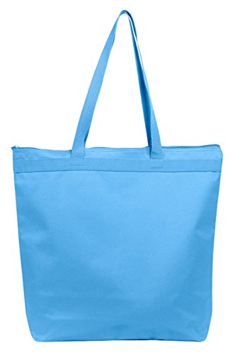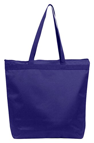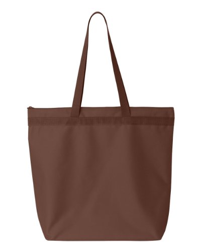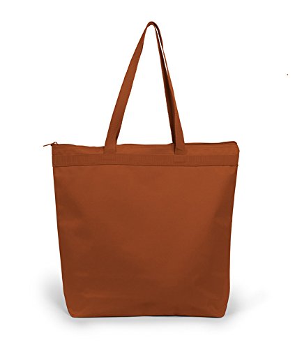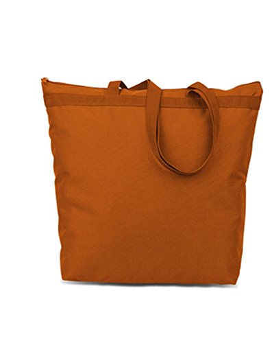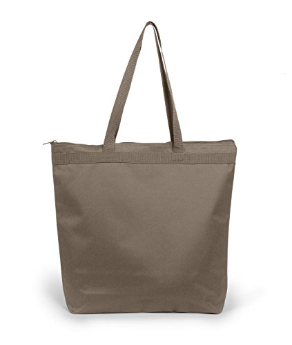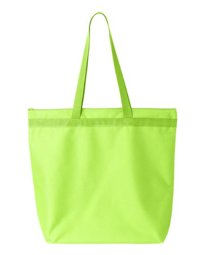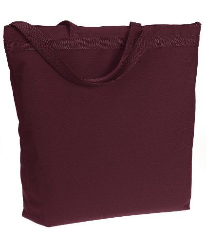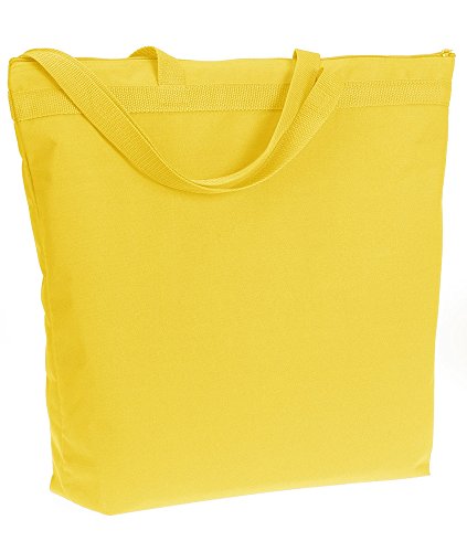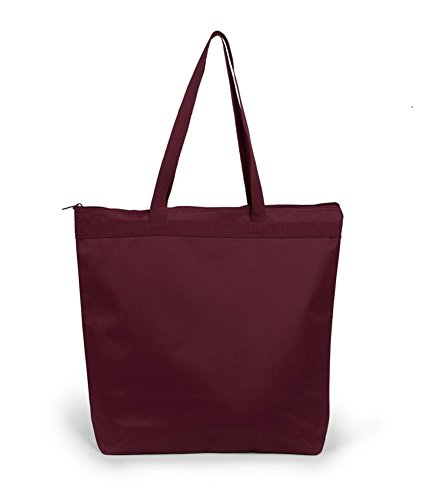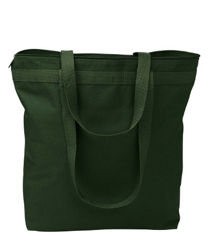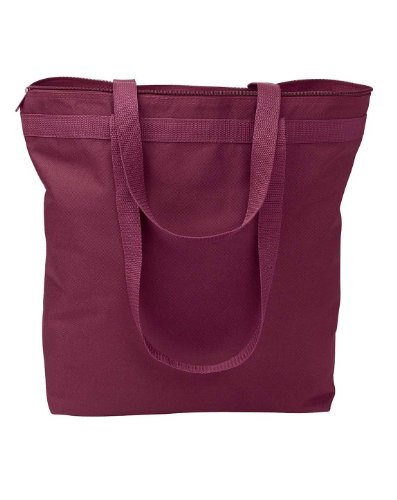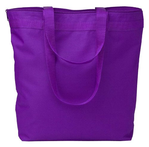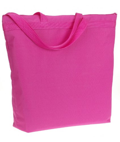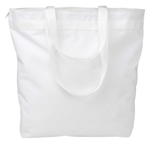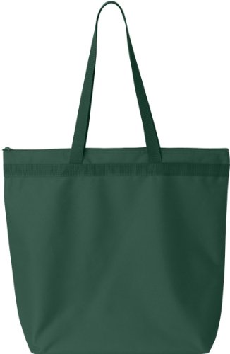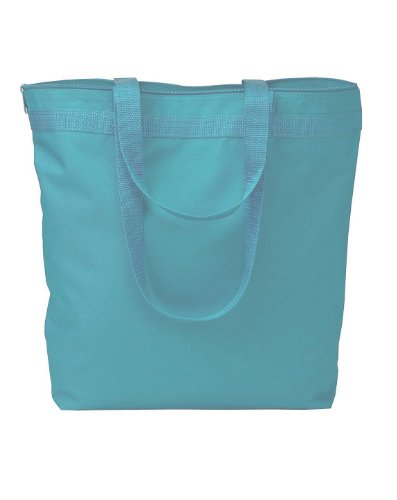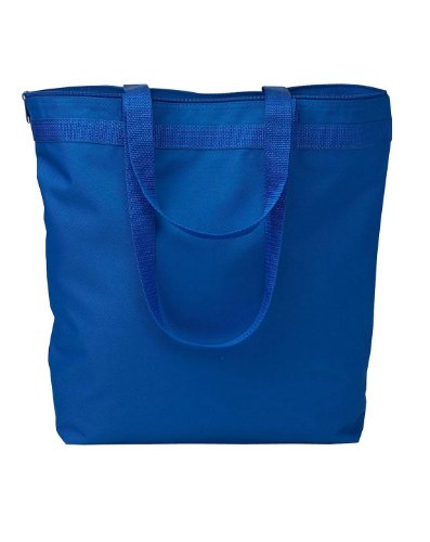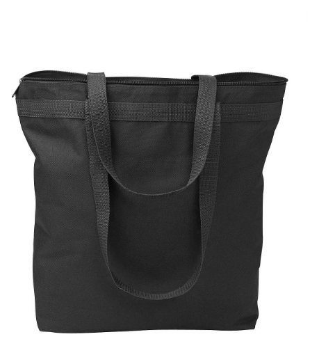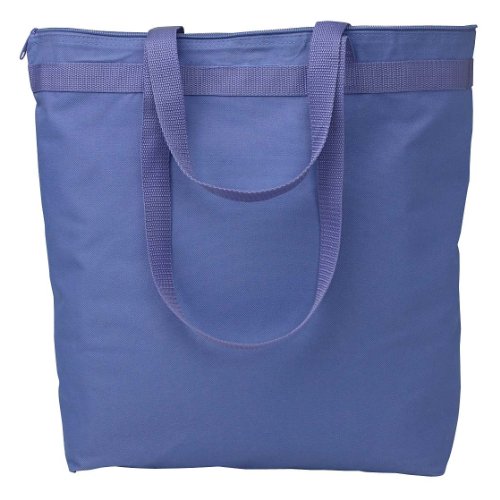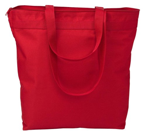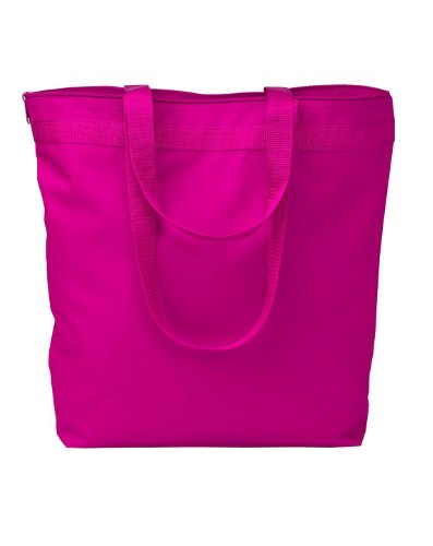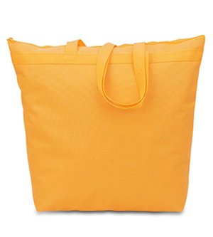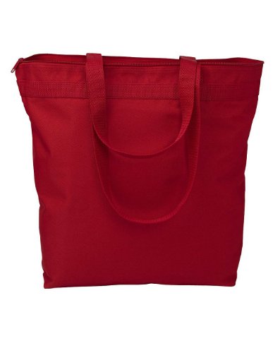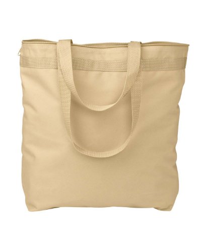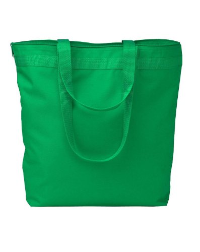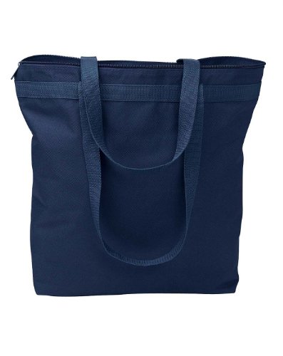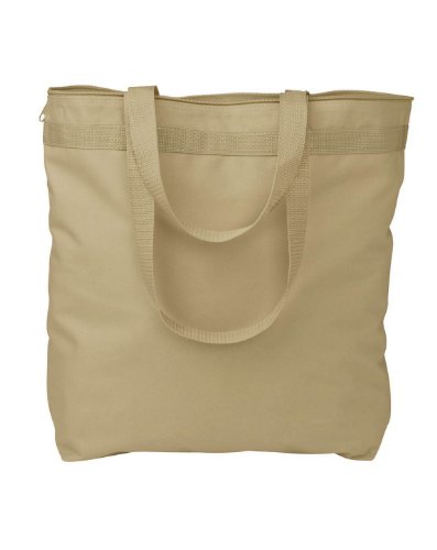 UltraClub Zippered Tote: Get a great bag and feel great about doing your part to help the environment with this amazing tote made from 50% recycled materials; 600-denier polyester; fabric contains 50% recycled material; zippered top closure; color-matched 28" handles and hardware ; 15 1/2"w x 11 1/2"h approx. imprint area; 8" diameter max. embroidery area; Sizes: 18 1/2"w x 16 1/2"h x 5"d. Care: Use non-bleached detergent and machine wash with warm water;do not use machine to dry.Leave in open ventilation to dry