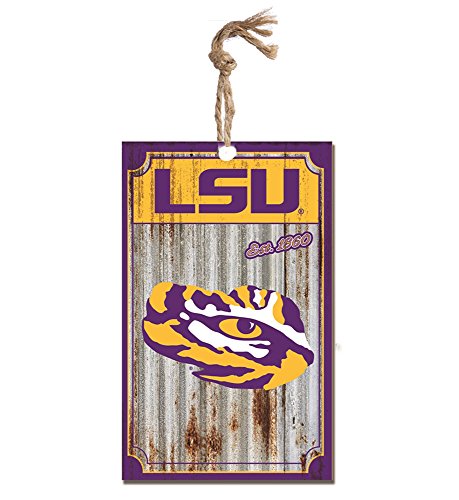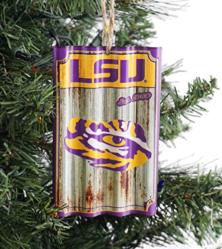 - Features a corrugate style ornament with the Louisiana University team logo, team colors & a rustic finish