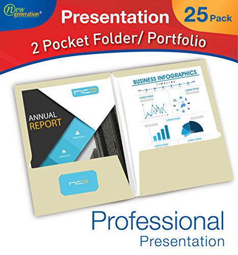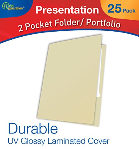 New Generation - IVORY 25 PACK , 2 Pocket Folders , Letter Size ,Business Presentation Folder / Portfolio ,Heavy Duty Paper UV Glossy Laminated, Pack in a Display Box.