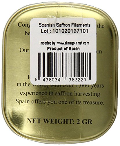 This 100 % pure Spanish Saffron features superior grade quality Spanish saffron. It takes over 200.000 flower heads to produce half a pound of Spanish saffron. Spanish Saffron is the finest spice in the world. Hand harvested from the crocus sativus flower, this is the absolutely indispensable ingredient in Spanish and Italian cooking. The Saffron accounts for a small portion of the world's production, but the quality is unmistakably superior to that grown in Turkey, Iran, and India. These Deep red threads (stigma) contain no waste or white plant parts (styles) that reduce the quality or add to cost; only the best of the best in our products! Tips for use of Saffron: We recommend 1/4 to 1/2 teaspoon of Saffron threads be added to a recipe that serves 6-8 people. Saffron releases it's flavor when heated, thus it is important to add the saffron before the dish is done cooking. You may add the saffron directly to the dish, or infuse it in warm liquid to release the flavor. Feel free to experiment by making a saffron "tea" by using water, broth, or wine to add to your favorite recipe. Some traditional recipes recommend gently toasting the saffron in a skillet (being careful not to burn) and then grinding prior to adding to the dish.Feature