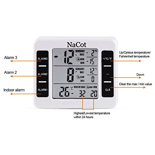How to Install the Sensor: The thermometer's digital display is magnet-mountable on a fridge,or use the integrated keyhole for wall mounting. The wireless thermometer sensors are equipped with a spring-loaded clips with a Plastic grip to securely attached to the edge of a shelf. 0