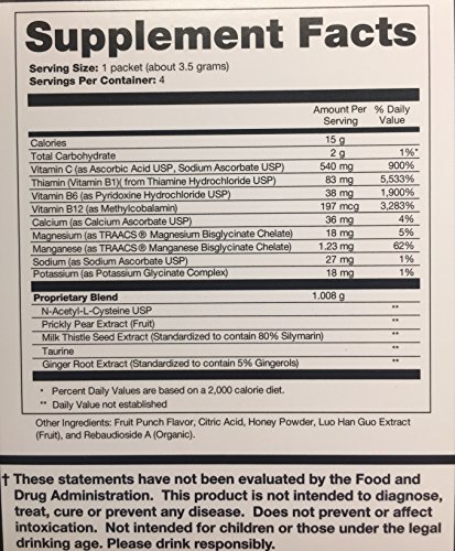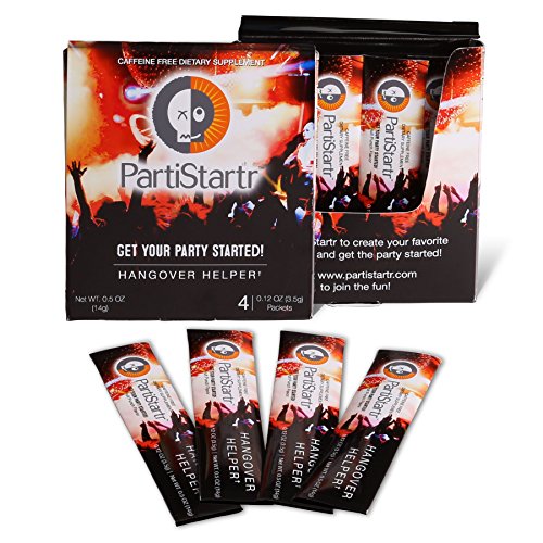 -. Binding : Health and Beauty -. Brand : PartiStartr Hangover Prevention Supplement -. EAN : 0689353847816 -. Feature : Hangover prevention formula that you take before you drink / Fruit punch flavor tastes great; mix with water or add to your favorite cocktail / ProP.R.Ietary blend of vitamins, P.R.Ickly Pear Extract and Milk Thistle Extract help reduce hangover symp / Compact size fits easily into your pocket, purse or suitcase / Natural ingredients and low calorie -. IsAdultProduct : 0 -. Label : JKC Services LLC -. LegalDisclaimer : These statements have not been evaluated by the Food and Drug Administration. This product is not intended to diagnose, cure or prevent and disease. Does not prevent or affect intoxication. Not intended for children or those under the legal drinking age. Please drink responsibly. -. Manufacturer : JKC Services LLC -. PackageQuantity : 4 -. ProductGroup : Health and Beauty -. ProductTypeName : HEALTH_PERSONAL_CARE -. Publisher : JKC Services LLC -. Studio : JKC Services LLC -. Title : PartiStartr Natural Hangover Prevention Supplement -. UPC : 689353847816