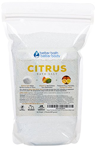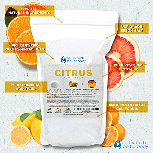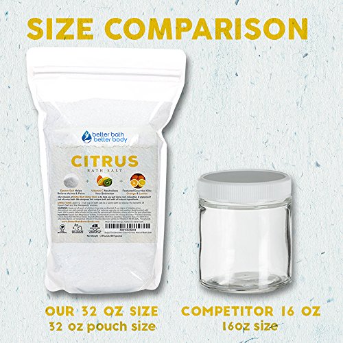 Citrus Bath Salt 32oz (2-Lbs) Epsom Salt With Orange, Lemon, Grapefruit, & Tangerine Essential Oils Plus Vitamin C Crystals - Uplifting Aromatherapy...