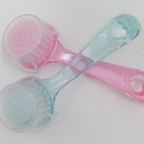 -. Feature : Helps to clean and exfoliate skin / Stimulates circulation / Brush cap included to protect bristles when not in use / Gentle enough for all skin types Nylon Bristles, Clear Plastic Handle / Package Content: 1 * Facial Brush