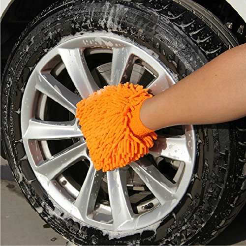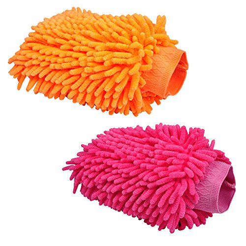 UXUAN Household Cleaning Gloves Car Wash Mitt with Double Sided Chenille (Pink+Orange)
