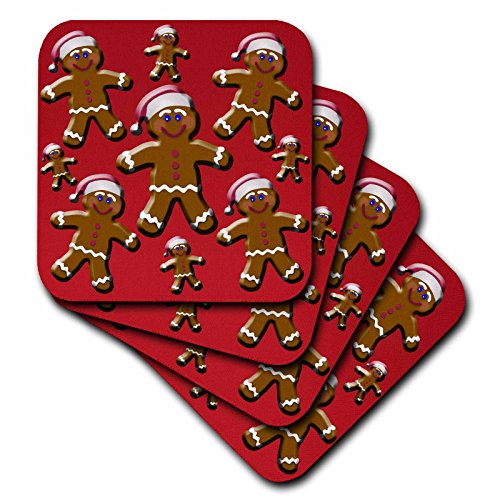3dRose Gingerbread Men with Santa Claus hat on a red background - Ceramic Tile Coasters, set of 4 (cst_36115_3)