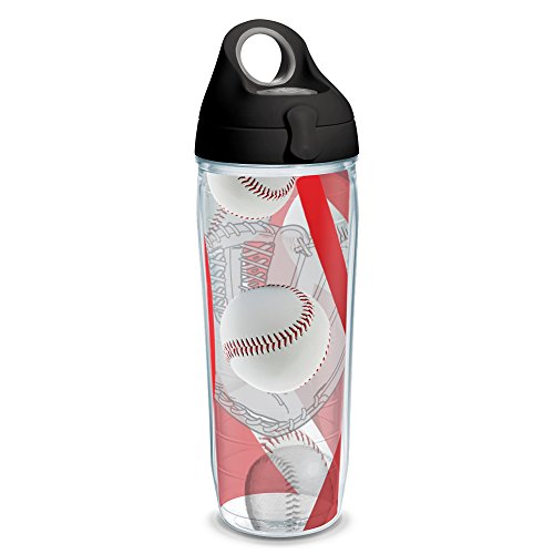 Tervis 1231939 Baseballs Wrap Water Bottle with Black WB Lid, 24 oz, Clear