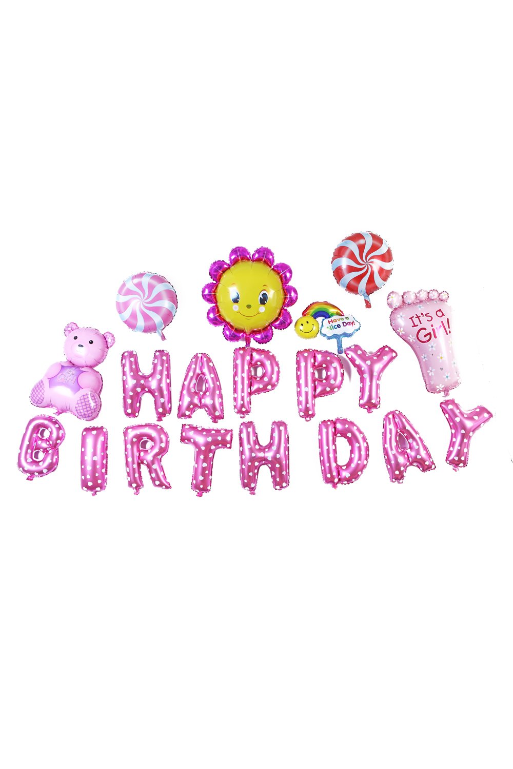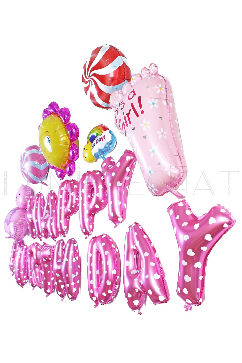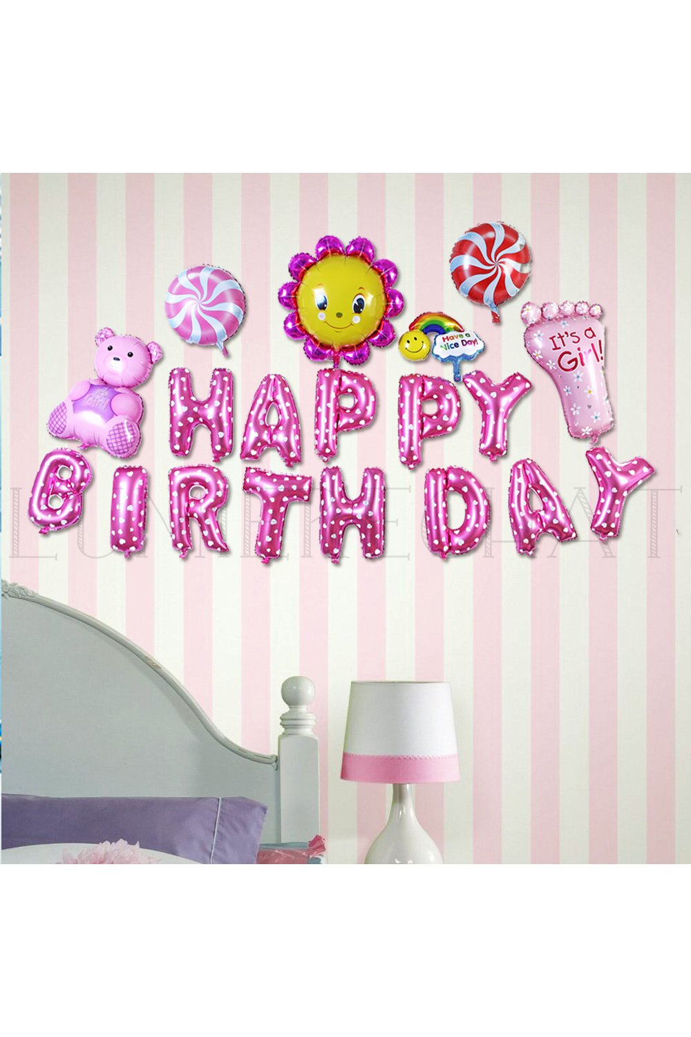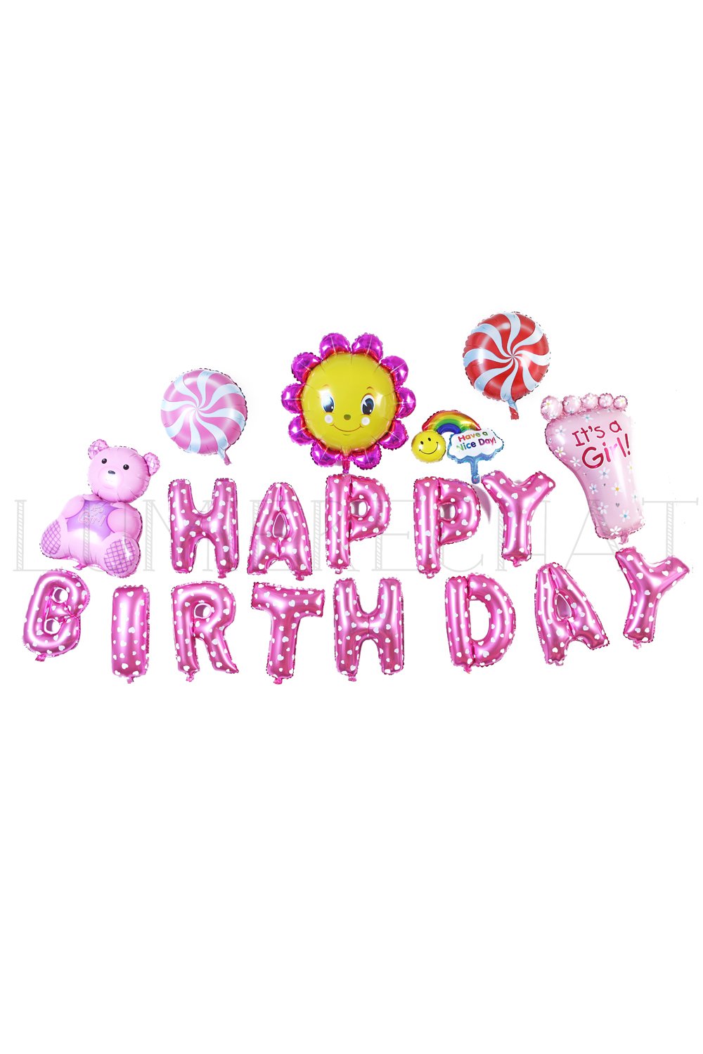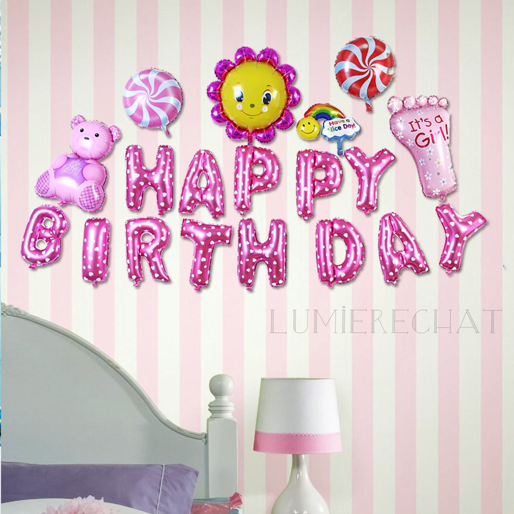 Lumierechat oversized set cute birthday HAPPYBIRTHDAY balloon 3m ● with air pocket ● (Pink)