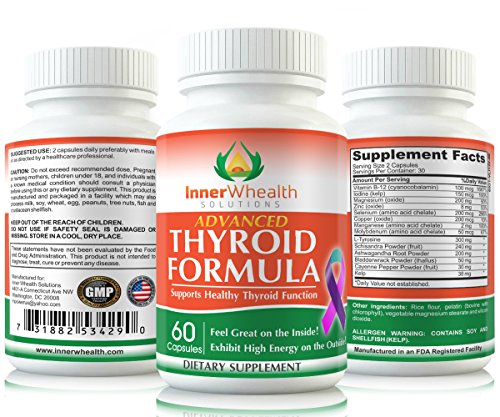 -. Feature : BUY OUR ADVANCED THYROID FORMULA BECAUSE IT HAS SAFE NATURAL HERBAL INGREDIENTS To Nutritionally Deal with Nagging & Irritating Problems. Other Customers Get This Because They Want To Focus and function better and improve energy, motivation, metabolism and maintain healthy weight. Feel good on the inside and look great on the outside as you regain self-esteem and self-image as you recover from loss of self-confidence. / POTENT FAST-ACTING FORMULA Based On Proven Science: Get support for natural, nutritional & herbal relief for problematic symp and concerns; Specially designed by herbal & nutritional experts for InnerWhealth Solutions for our customers to gain and maintain mind-body wellness. / A SIMPLE SOLUTION WITH A FOCUS ON OVERALL HEALTH & WELL-BEING: Complex Formula of Herbs, Minerals, Vitamin-based Results Oriented Ways to Deal with Fatigue, lethargy, low energy, low libido, sleeplessness, irritability, feeling on the edge, stressed, anxious-ness... / REMEMBER: Seek Medical Advice for Thyroid Problems! Any Thyroid Problem Is A Serious Problem. Our Thyroid Formula should be seen as a research-based, scientifically developed , nutritional and herbal complex that promotes specific and general wellness, that supports customers who are already getting the advanced help they need and it should be part of a prevention oriented regimen that includes a balanced diet. / HIGHEST QUALITY: 100% Guaranteed Safe, Natural & Effective! Made in the USA in FDA Registered, GMP and NSF Certified Facility. Get it now.