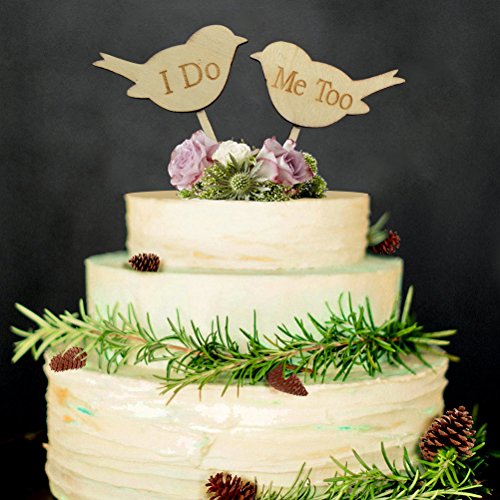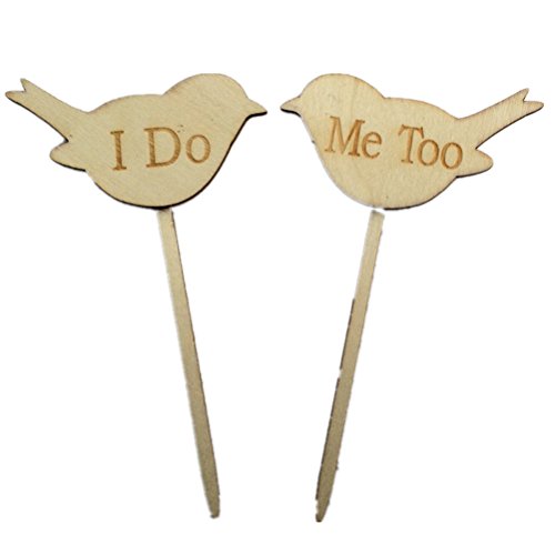Tinksky 2pcs I DO ME TOO Love Birds Wedding Engagement Wooden Cake Topper Photo Props Favors