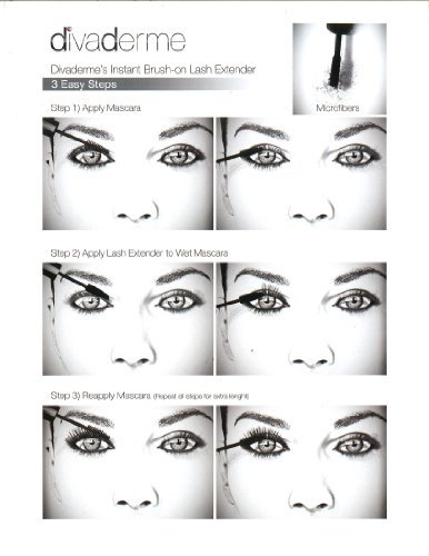 Divaderms' secret to perfect lavishly long full beautiful lashes. Instantly brush-on lash extension that add hundreds of tiny natural lash fibers enriched with panthenol. Simply apply in between coats of your favorite mascara, or use with our "Mascara Diva" for fabulous results.