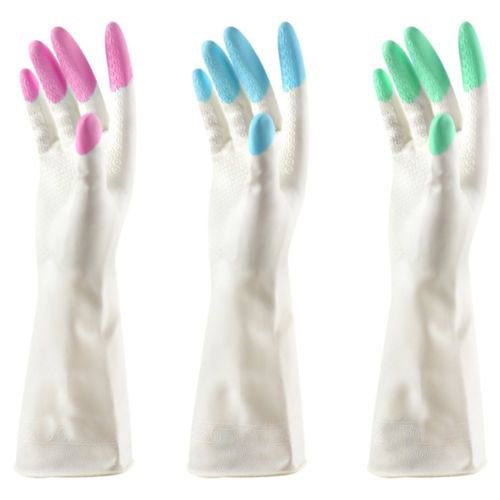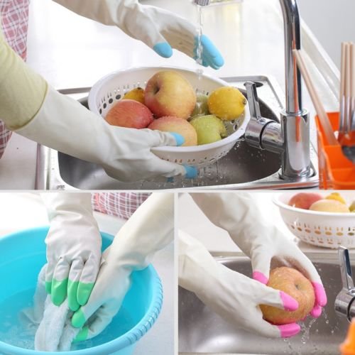 Meeall 3 Pair Reusable Waterproof Household Latex Gloves for Kitchen Dish Washing Laundry Cleaning